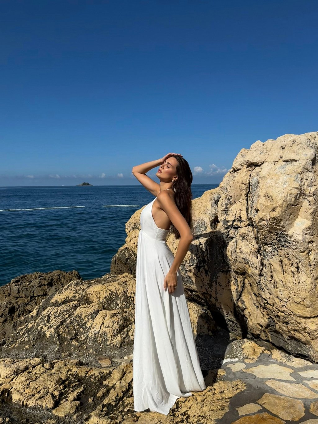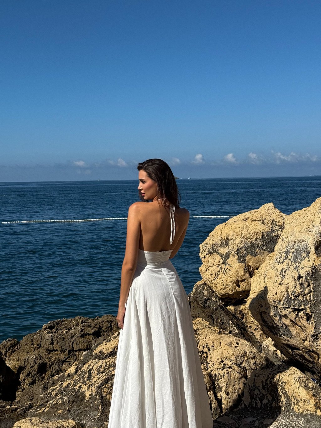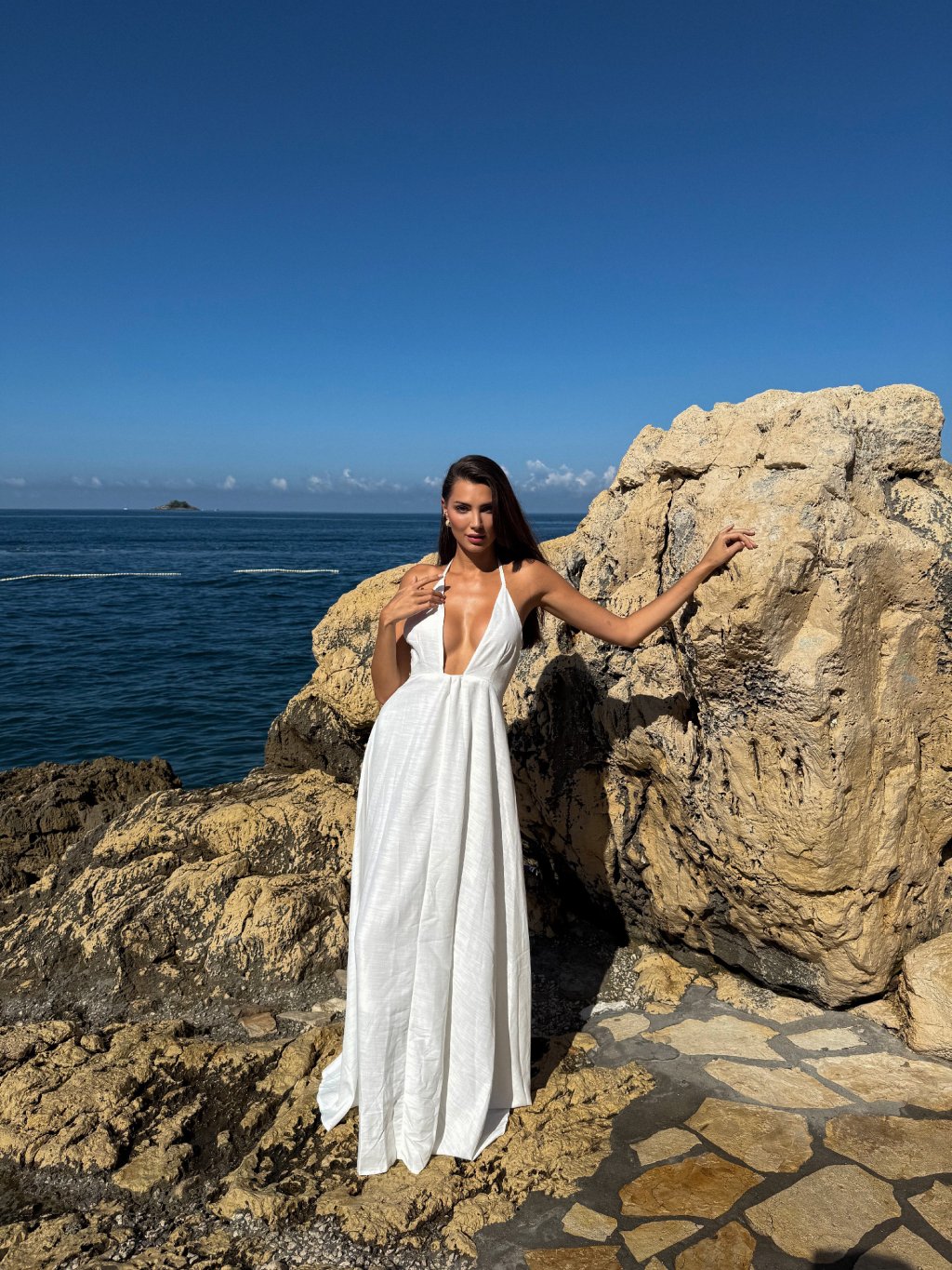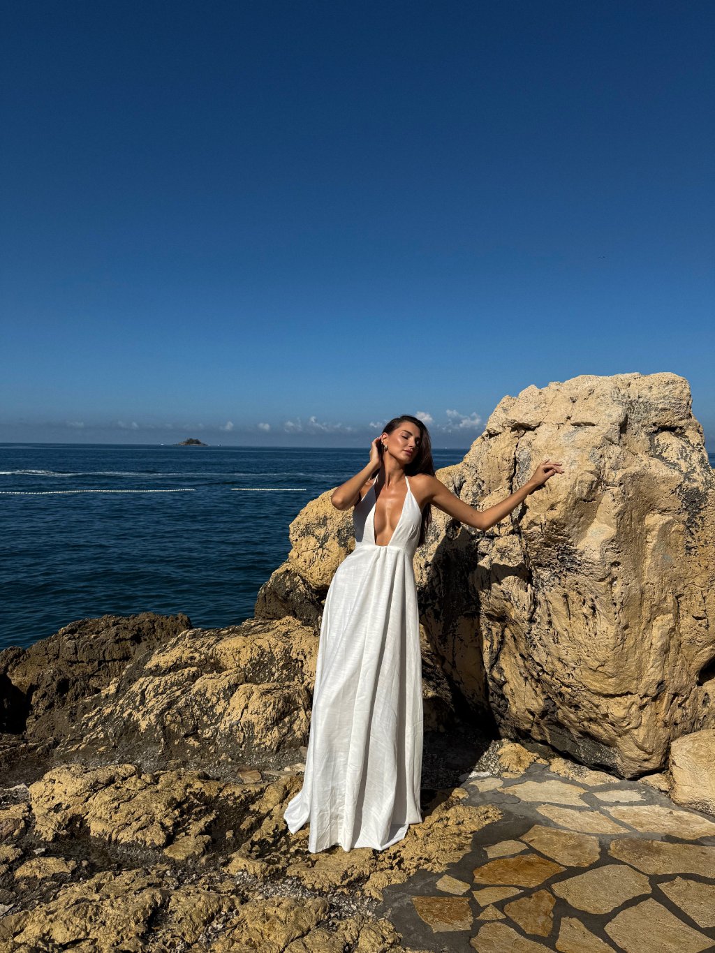 Střih šatů je volný a splývavý, takže padne téměř každé postavě a dodává pocit lehkosti a elegance. Ideální na procházky po pláži, večerní večeře nebo fotky, které si budete chtít pamatovat.