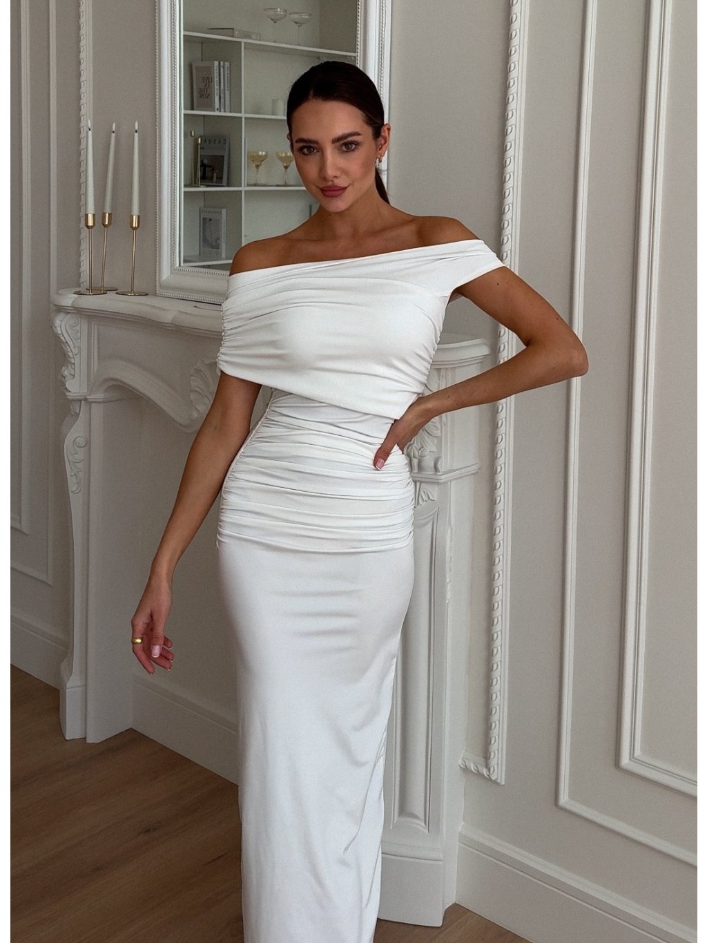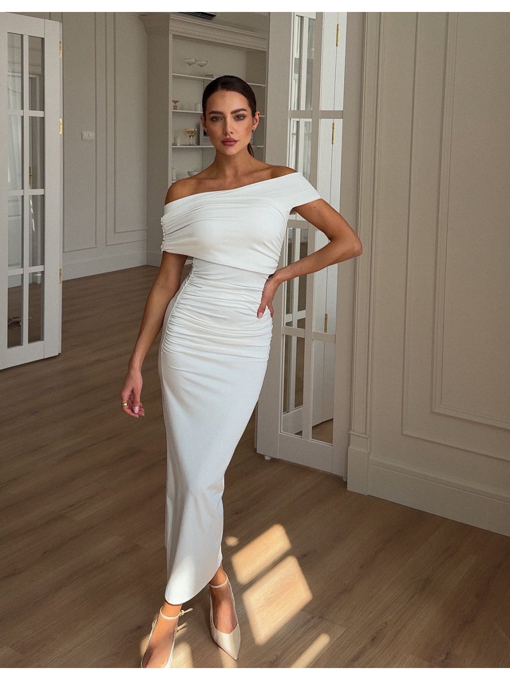 Tyto bílé šaty s odhalenými rameny jsou dokonalou kombinací jednoduchosti a elegance. Přirozeně kopírují siluetu, lichotí různým typům postav a hodí se na různé příležitosti – od letních večírků po speciální události. Nadčasový střih a čistý design zaručují, že se stanou oblíbeným kouskem ve vašem šatníku.