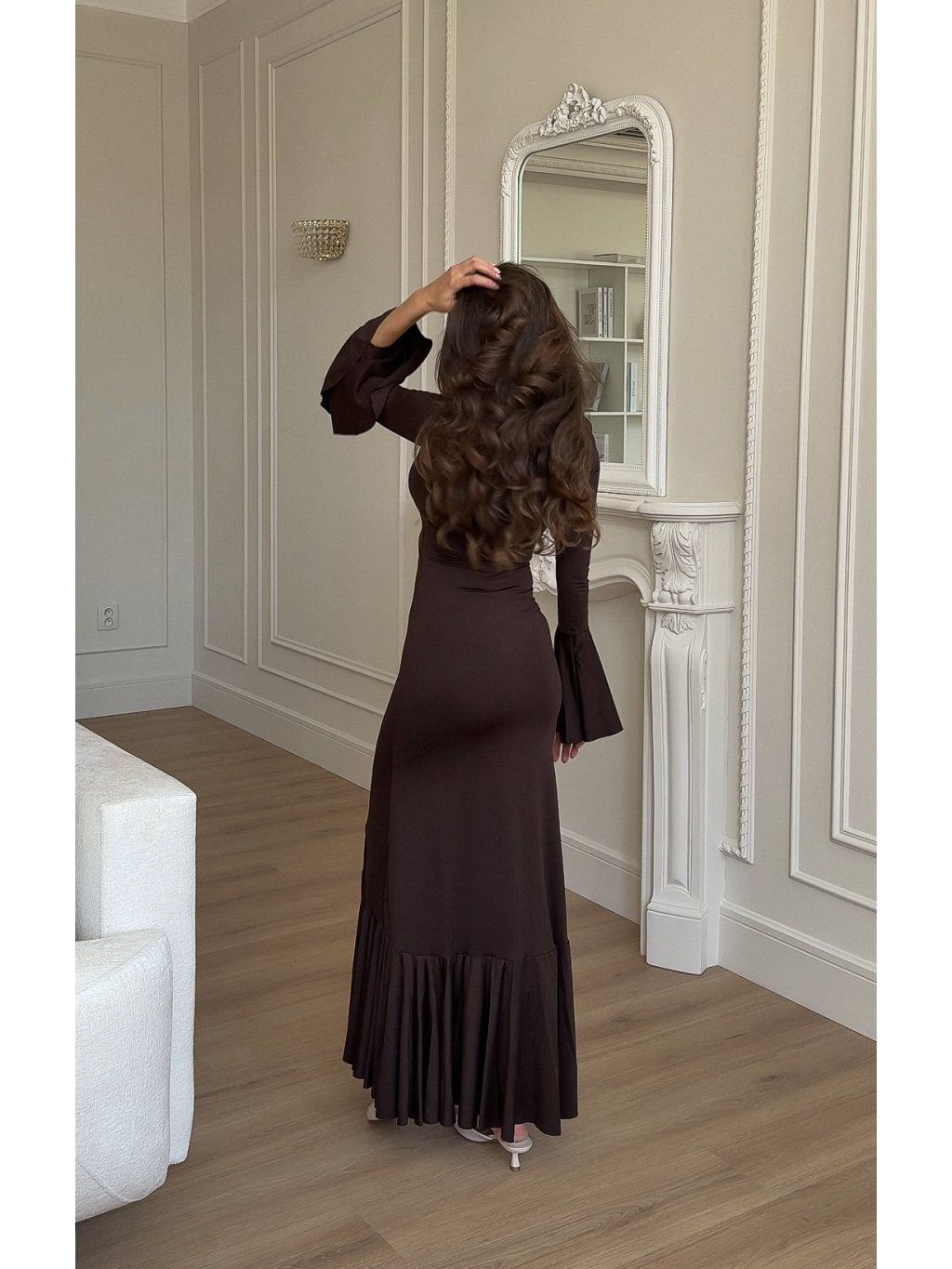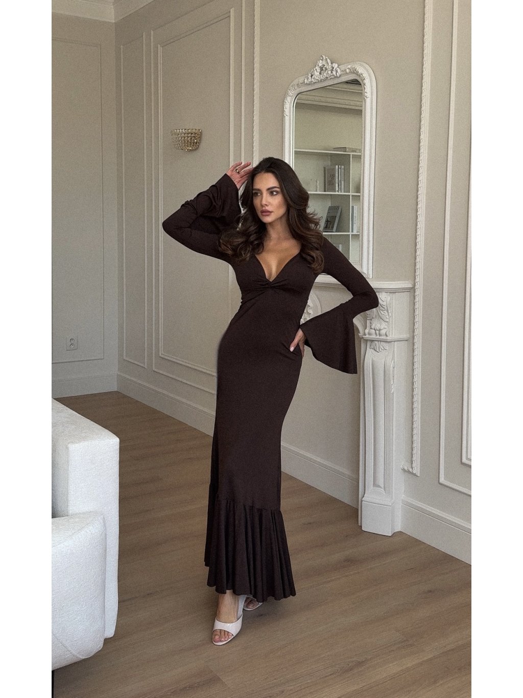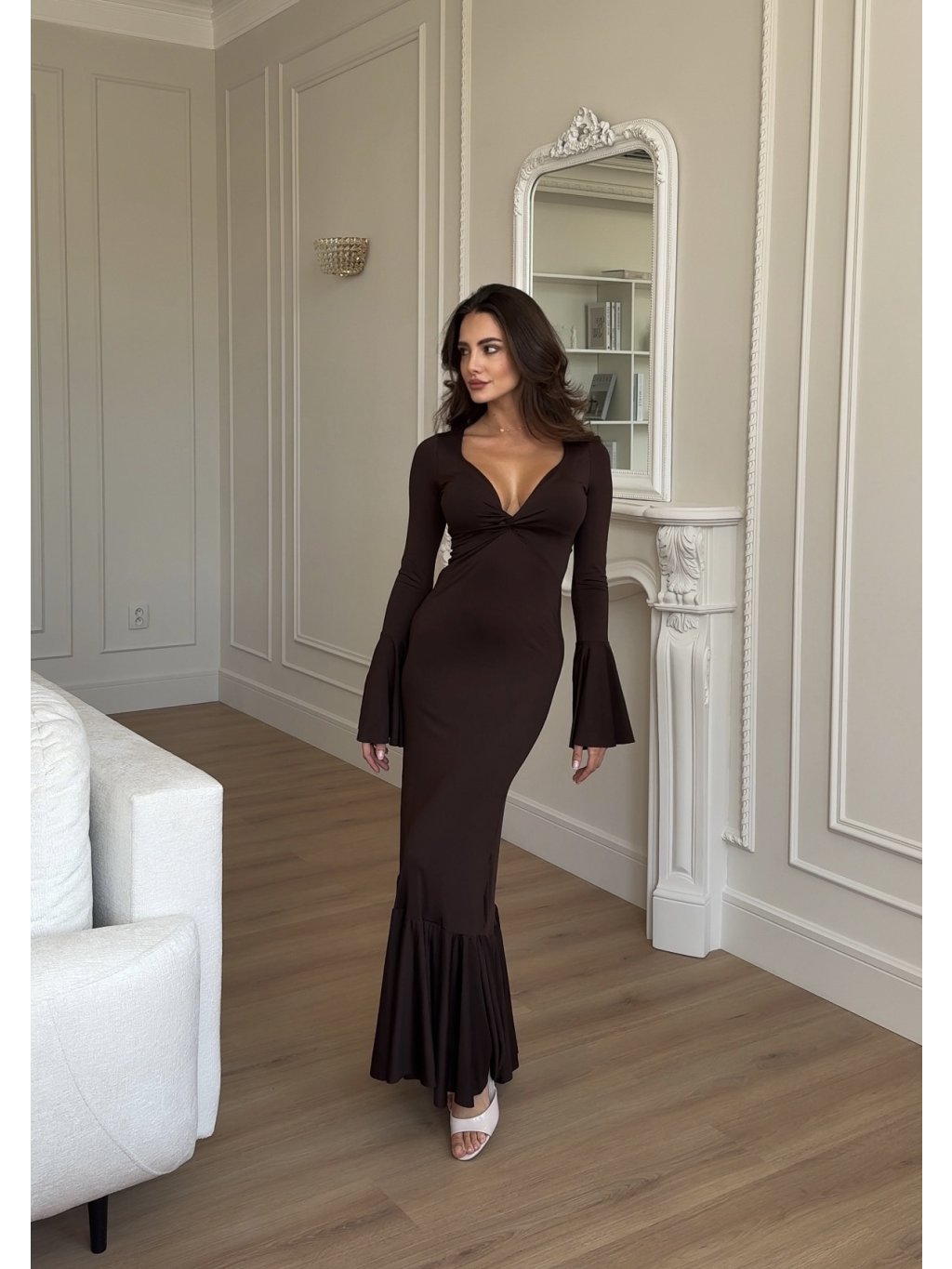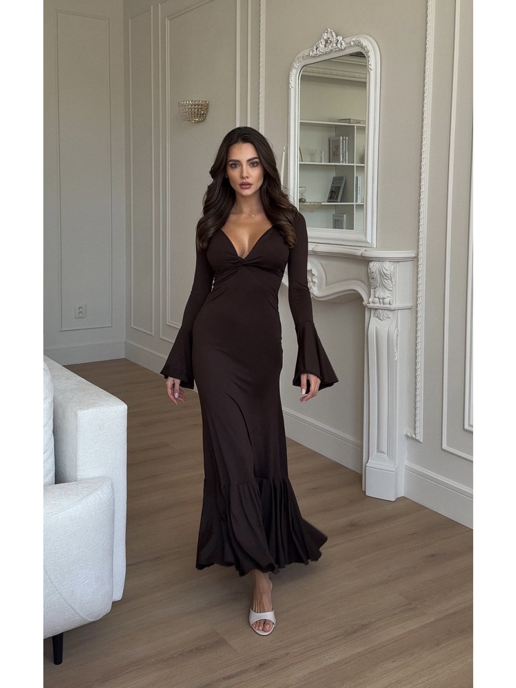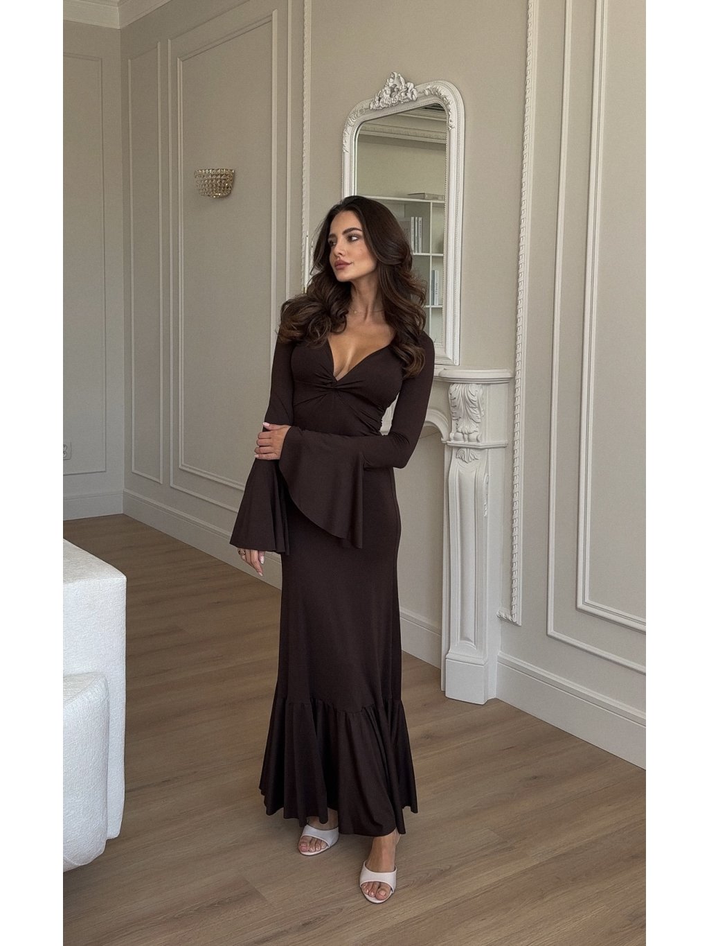 Hnědé šaty Sienna zaujmou svým unikátním střihem a rozšířenými rukávy, které dodávají modelu vzdušnost a jemnou eleganci. Precizně navržený střih lichotí postavě a zvýrazňuje ženskou siluetu. Ideální volba pro stylové příležitosti, večerní akce či speciální události, kdy chcete působit sebevědomě a sofistikovaně. Šaty kombinují pohodlí s moderním designem a nabízí jedinečný, výrazný vzhled.